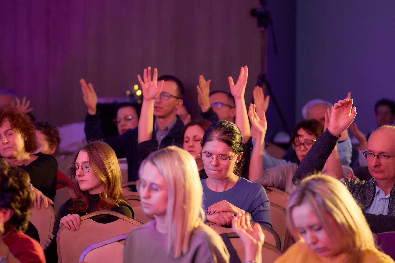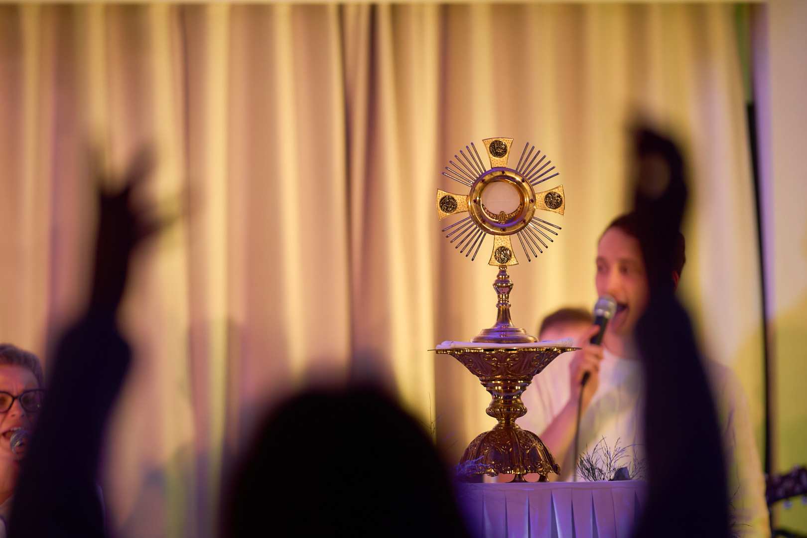 Po Eucharystii uczestnicy przemieścili się do sali konferencyjnej Grand Hotel Kielce, gdzie dalsza część spotkania rozpoczęła się modlitwą uwielbienia prowadzoną przez Zespół To OnN oraz księdza Piotra Białka. Był to czas wspólnej modlitwy, otwarcia serca i wprowadzenia w temat przewodni forum – uwielbienia pośród ciemności.